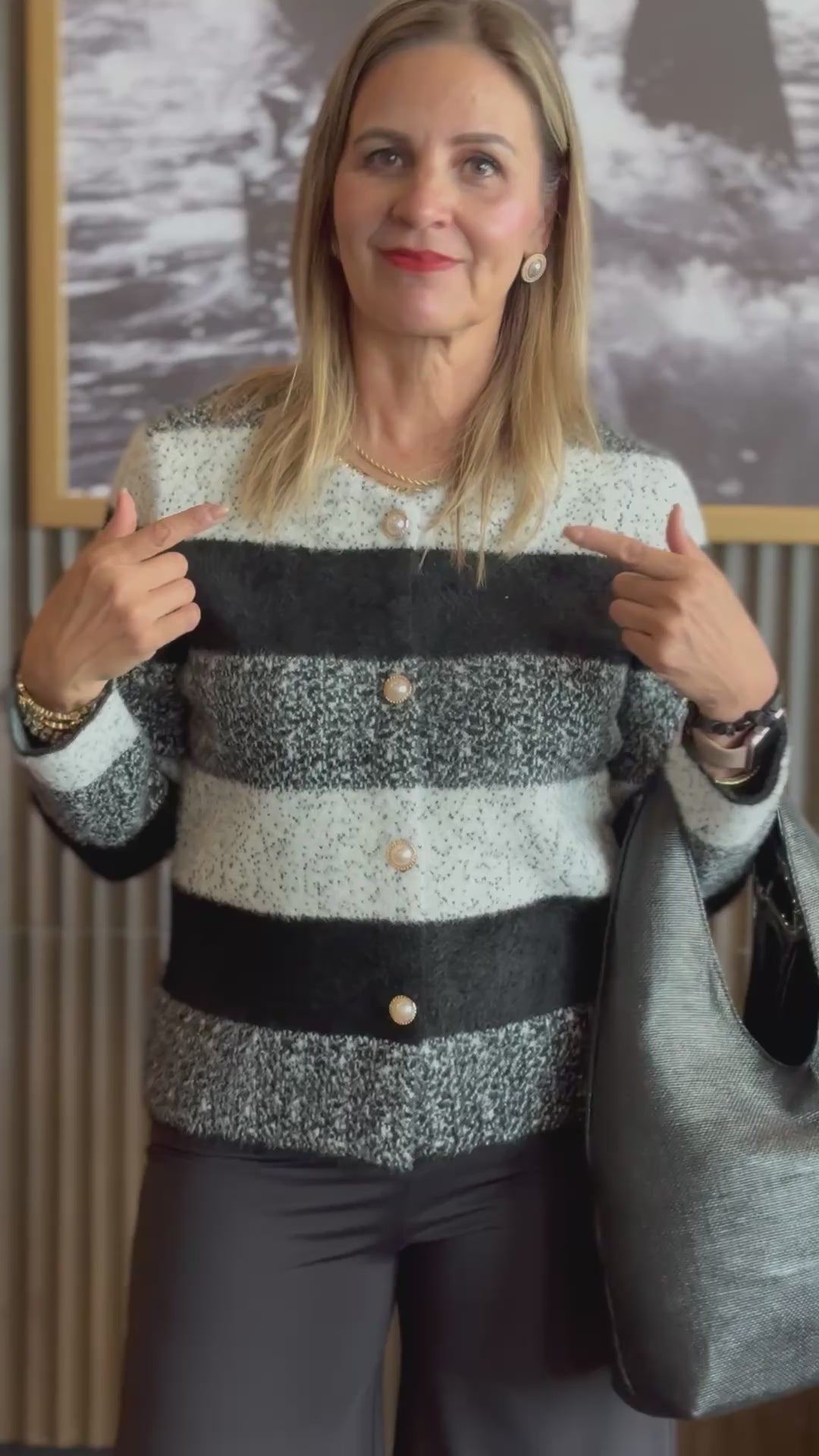 Suéter de manga larga con textura suave y botones decorativos al frente.